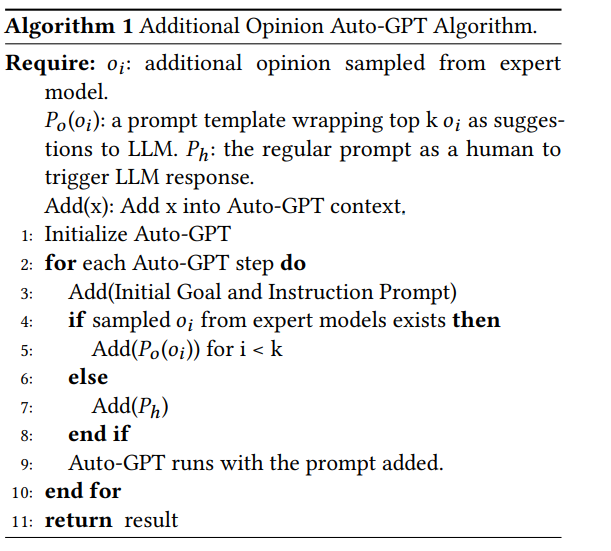 - 이 알고리즘의 핵심은 Auto-GPT가 결정을 내리기 전에 expert model의 의견을 참고하도록 하는 것입니다.