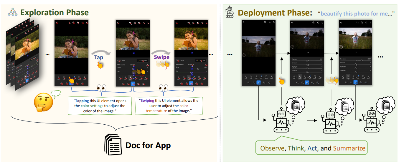 - 목표: Agent가 새로운 App의 기능과 조작 방법을 자율적으로 학습하여, "Doc for App" (지식 베이스) 을 구축.