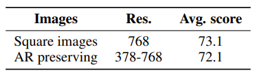놀랍게도 평가 시 하위 이미지(및 독립 실행형 이미지)의 해상도를 높이는 것은 이미지 분할만으로 얻을 수 있는 성능 향상에 비해 미미한 성능 향상만 제공한다는 것을 발견