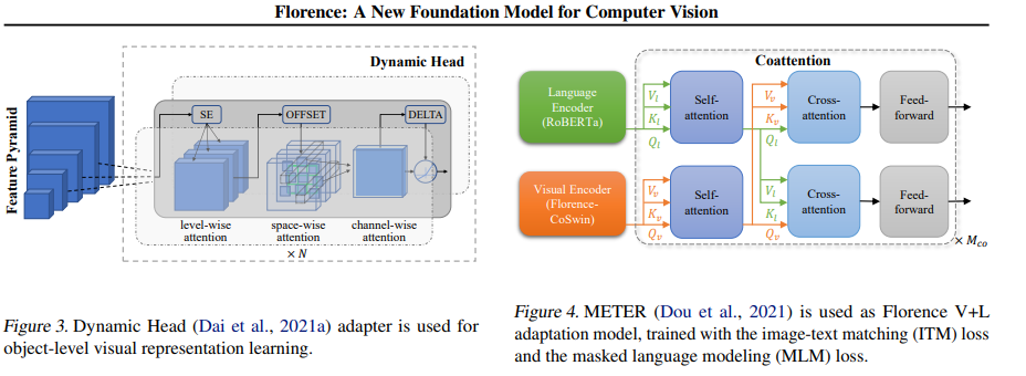 Florence 사전 훈련된 언어 인코더는 BERT 기반 아키텍처를 활용하기 때문에 이 어댑터에 사용할 수 있습니다. 그런 다음 두 가지 양식을 함께 융합하여 공동 주의를 기반으로 하는 변환기 네트워크를 사용하여 상황별 표현을 학습합니다.