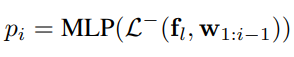 Dense location outputs from language models. location-specific feature fl이 주어지면, auto-regressive decoding을 사용하여 language model에 입력하여 captioning을 수행할 수 있습니다: wi = L(fl, w1:i−1). language model의 마지막 linear layer는 vocabulary mapping layer이며, language feature space에서 one-hot vocabulary index로 매핑합니다. L−를 마지막 vocabulary mapping layer가 없는 language model이라고 하면, decoding process (간단하게 하기 위해 여기서는 greedy decoding을 보여줍니다)는 다음과 같이 다시 쓸 수 있습니다.