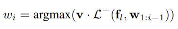 여기서 v는 linear vocabulary mapping layer의 weight입니다.