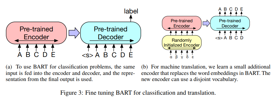 Figure 3: Classification 및 translation을 위한 BART fine-tuning.