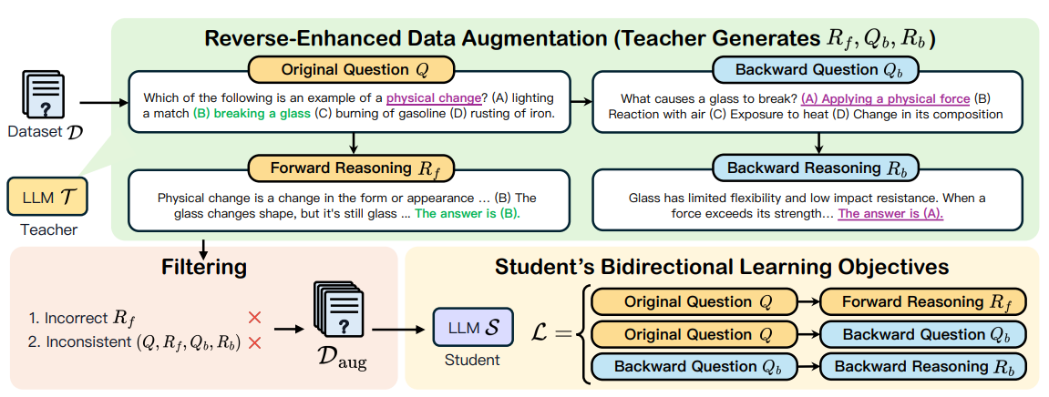 - Teacher model을 사용하여 구조화된 순방향-역방향 추론 데이터를 수집