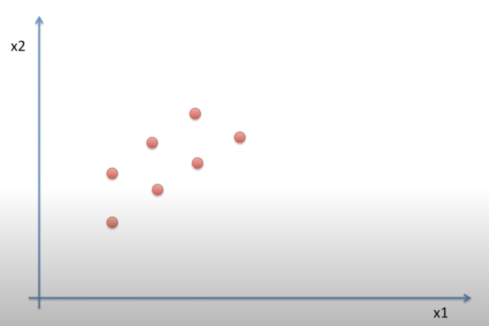 위와 같은 데이터가 있다고 했을때 x축 혹은 y 축으로 그냥 냅다 내려버리게 된다면 정보의 손실이 굉장히 큽니다. 이에 정보의 손실이 최대한 없는, 즉 분산을 최대로 유지하는 하나의 축을 찾아서 그 축에 사영하는 것이 pca 입니다.