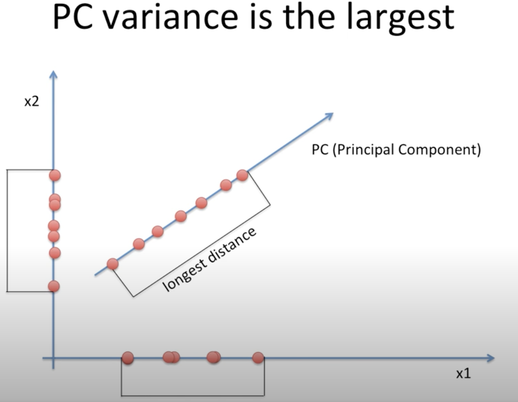 따라서 분산을 최대로 하는 축에다가 사영하는 것이 가장 정보의 손실이 적고 차원축소를 성공적으로 할 수 있게 됩니다.